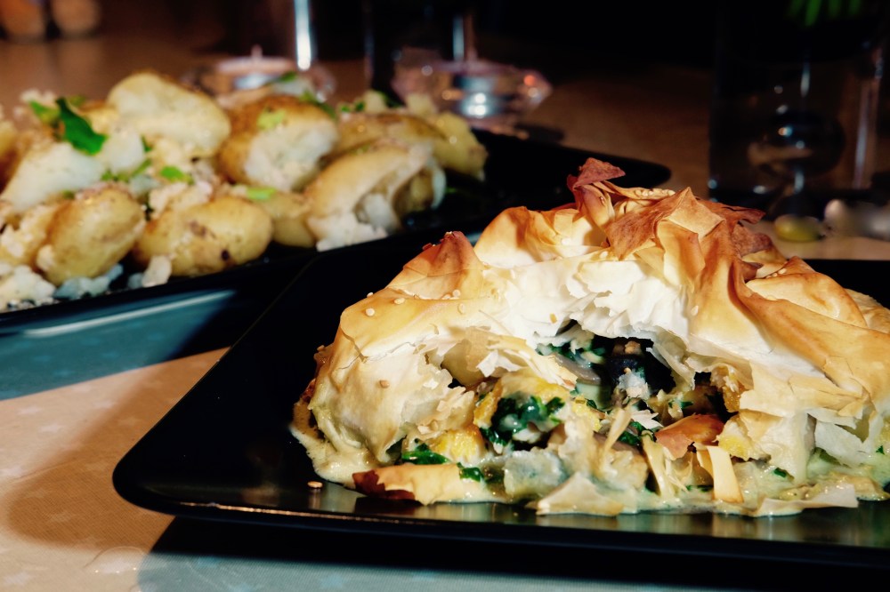 You will need to work quickly with the pastry as filo dries out at very short notice. If you have to leave it, drape the waiting pastry with a damp tea towel.